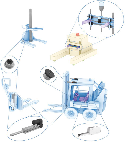 叉車和移動升降輔助設備在現代化車間里負責大部分的物料搬運工作。這里所展示的應用僅僅是Thomson產品和解決方案中的少數幾個例子。請您隨時將具體需求告訴我們,以便了解關于我們產品和服務的更詳細信息,以及選擇Thomson作為您的供應商所帶來的巨大優勢。
