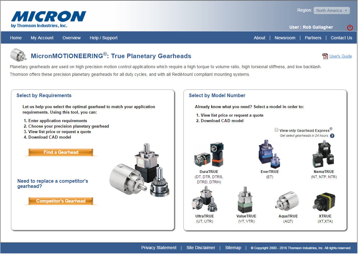 “MicronMOTIONEERING® is an intuitive tool that greatly simplifies gearhead sizing and selection to help OEMs optimize their machine design in much less time than it takes using manual calculations and paper catalogue look ups. End users will find the cross reference guide and expedited delivery option a life saver for line down situations,” said Howard Horn, Product Manager Micron Gearheads at Thomson Industries. ”It’s the best sizing and selection tool for gearheads available online today.”