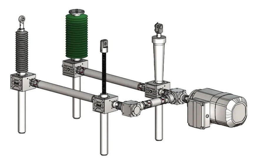 THOMSON自成立75年以來,致力于提供成套的機械設備的解決方案,我們給客戶帶來的價值不僅僅限于只賣一個產(chǎn)品,我們還能為客戶提供成套的技術解決方案,此次AGV的四個蝸輪絲桿升降機的同步舉升,我們通過一個聯(lián)軸器,一個電機這樣的技術方案讓四個絲杠升降機實現(xiàn)同步運動。
