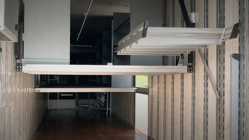移動車內的地板。HD電動推桿優越的同步能力支持車廂內部的地板在一定范圍內進行舉升,這就使得車內放置物品的空間得到了優化。