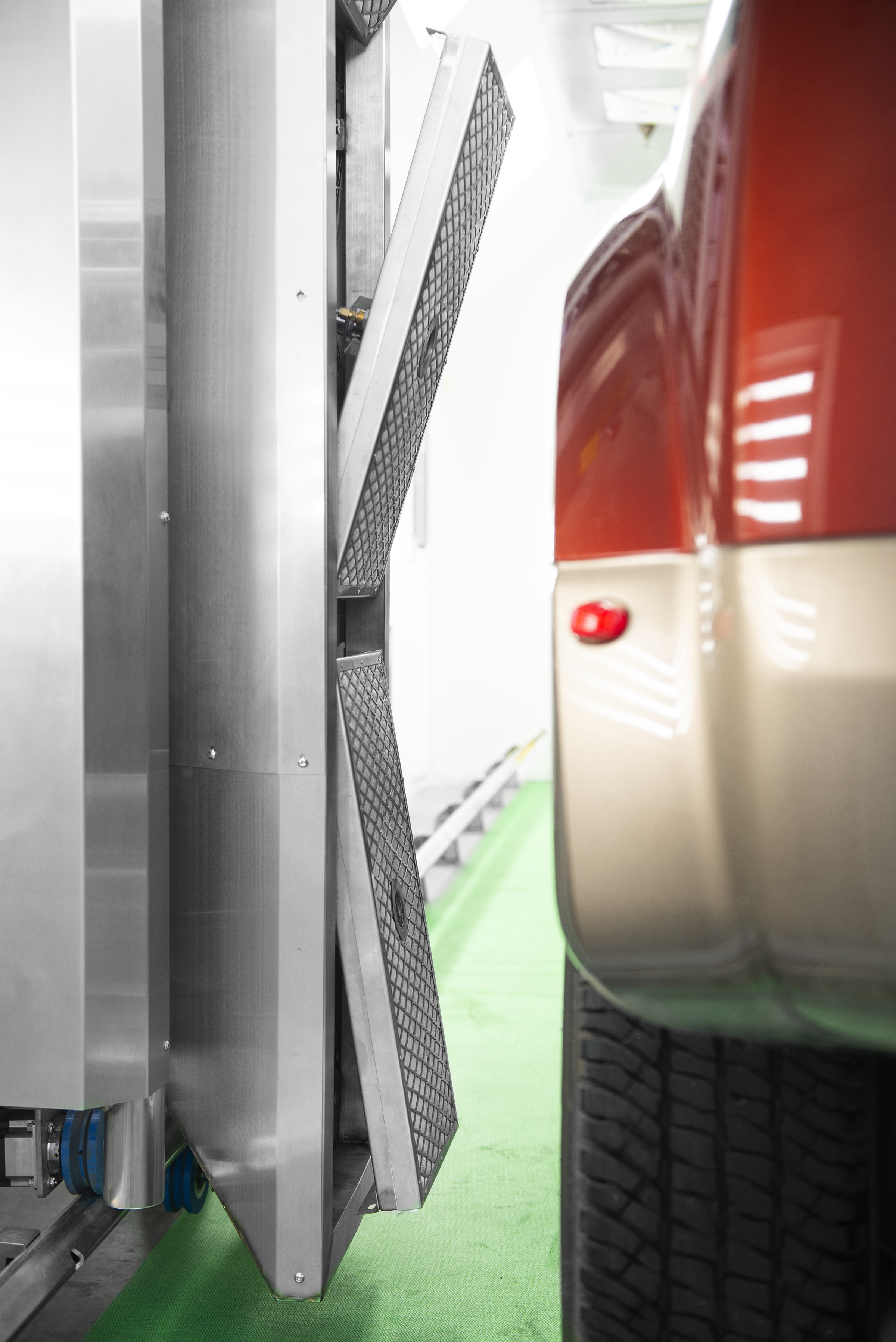 “我們的龍門框架可以安裝在汽車車身車間的噴漆室中,沿著地面上的兩條軌道運行。”U.S. Autocure工程師Mark Abel說道,“當龍門框架前后掃描時,裝有紅外加熱燈的吊桿會上下移動,以適應車輛高度的變化。同時,框架兩側裝有加熱器的百葉窗會按照預編程的順序折疊和展開,以適應車輛的外形輪廓。這也可以實現自動化運行,其中每側的攝像機也會上下移動,讀取車輛的寬度和高度并將定位數據發回控制器。”