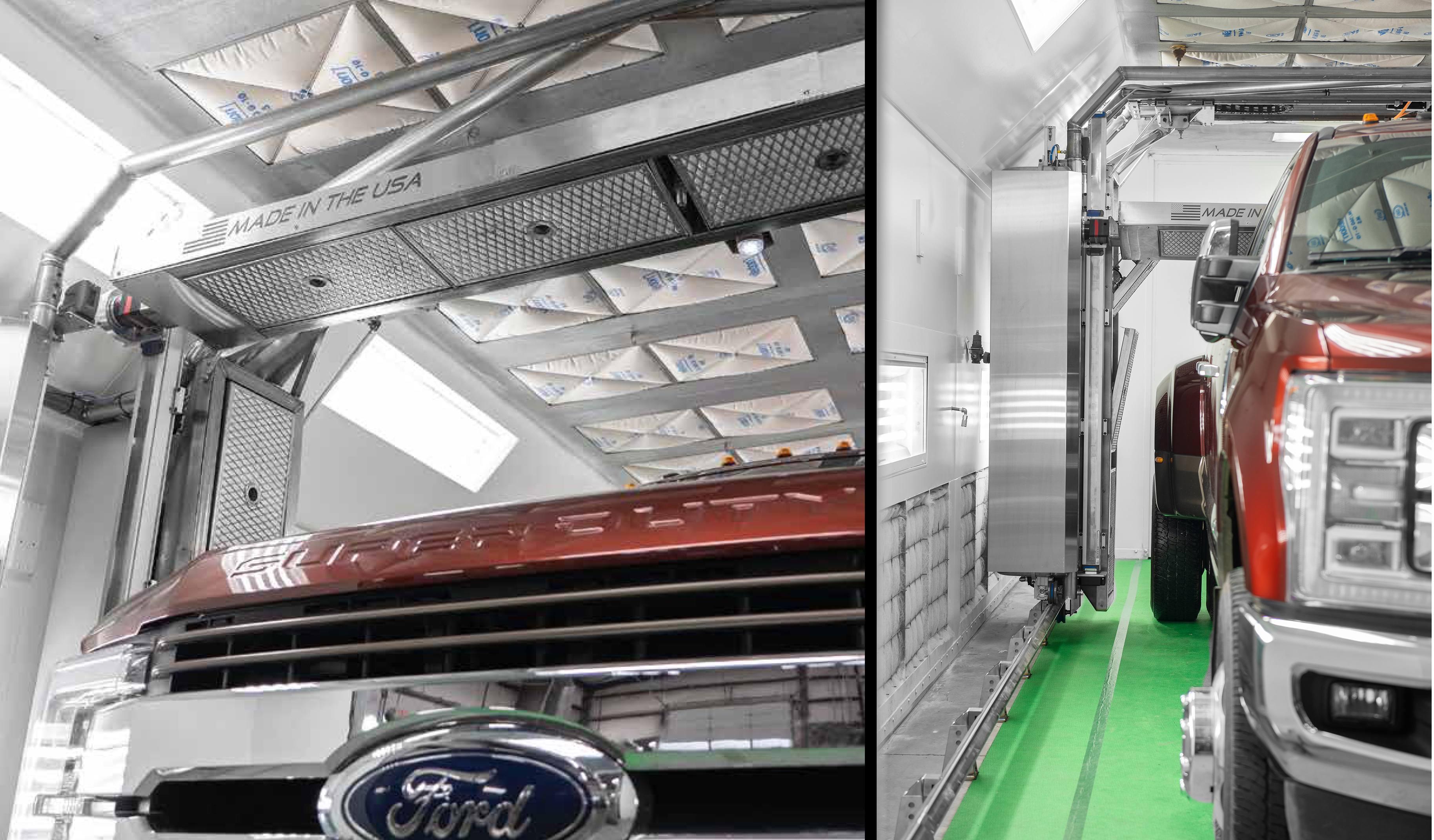 直線運動系統組合可定位10個加熱器,從而完整覆蓋整個車頂、側面和尾部。固化周期完成后,所有部件都將有相同的曝光量,這有助于實現均勻的噴漆表面,而沒有燒焦點、發粘或遺漏區域。