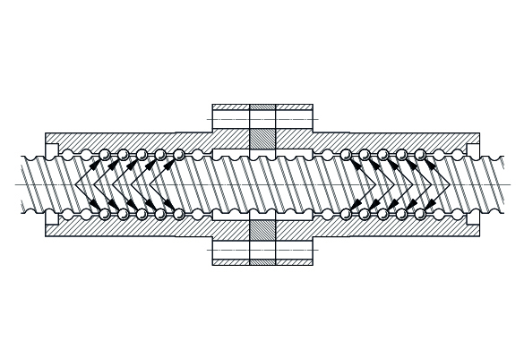 另一種方法是使用可調(diào)節(jié)預(yù)加載的滾珠螺母。這種方法使用中間帶彈簧組件的兩個(gè)滾珠螺母。彈簧組件將一個(gè)滾珠螺母推向絲杠滾道左側(cè),將另一個(gè)滾珠螺母推向絲杠滾道的右側(cè)。通過調(diào)節(jié)螺母間彈簧張力的螺紋環(huán),可以根據(jù)具體應(yīng)用微調(diào)預(yù)加載力。該方法還允許單獨(dú)購買螺母和絲杠,同時(shí)仍然實(shí)現(xiàn)預(yù)加載。